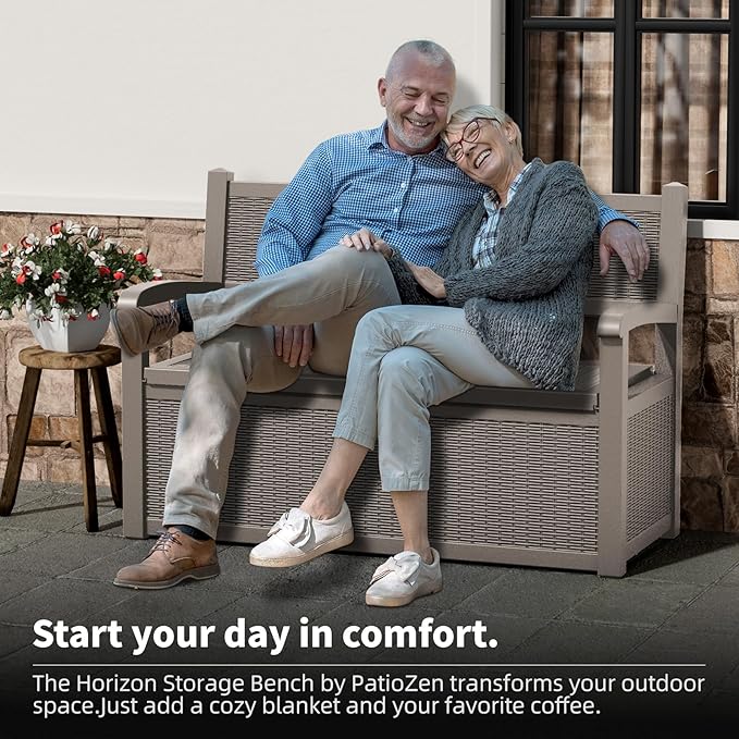 Outdoor Storage Bench - Waterproof Resin Patio Bench with Storage, All-Weather Durable Design for Garden, Deck, or Patio