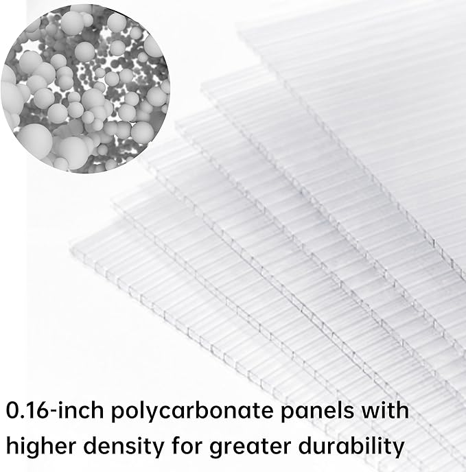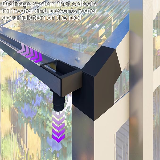 - ALL-SEASON PROTECTION: Built to endure heavy rain, intense sun, and varying climates, the greenhouse ensures your plants are shielded throughout the seasons. Its polycarbonate panels also provide excellent electrical insulation, contributing to a safe and healthy growing environment.