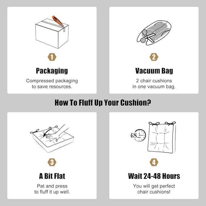 - ☝SIZE AND PACKAGING: 1 set includes 2 outdoor furniture cushions, suitable for most standard-sized patio chairs, garden chairs, and outdoor dining chairs; these outdoor patio cushions keep you feeling supported
