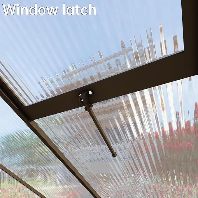 - 【Ultra-Durable Build】The Fly by Yan greenhouse is constructed with heavy-duty 720g/m² polycarbonate panels and a reinforced aluminum frame, offering exceptional durability. Built to withstand the elements, it provides year-round protection for your plants, ensuring a stable and enduring gardening environment.